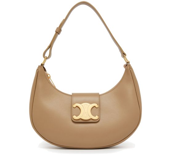 Celine's Ava Triomphe bag in smooth calfskin is a stunning fusion of elegance and practicality. With visible topstitching and a chic flap closure, it exudes sophistication. The wide strap allows for comfortable wear on the shoulder, while the single handle offers versatility. A gold finish adds a luxurious touch, making it perfect for any occasion.