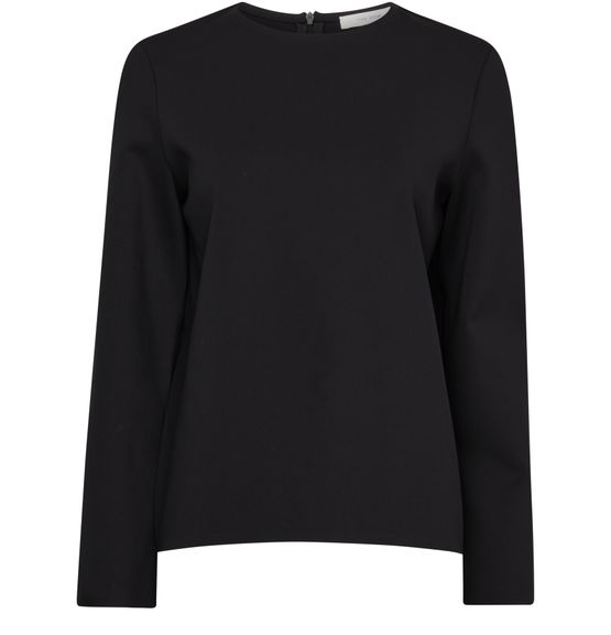 The Row Azalea top is a long-sleeved crew neck shirt with a minimalist design. It features a discreet logo at the back label and a back zipper closure for a sleek finish. This versatile piece can easily be dressed up or down, making it a stylish and practical addition to any wardrobe.