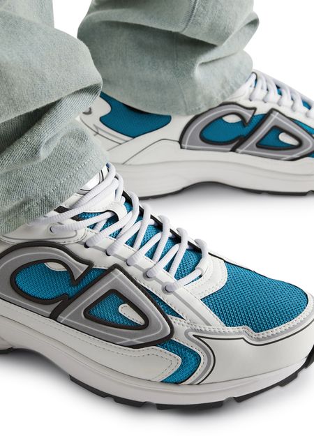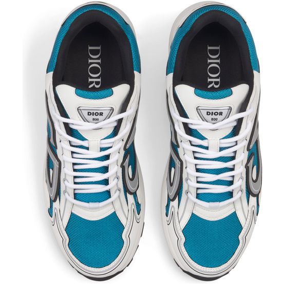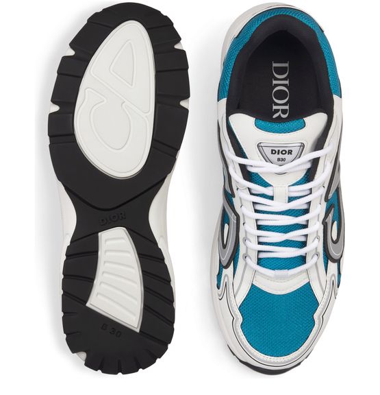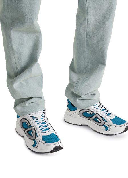 Introducing Dior's B30 Sneakers. Crafted with mesh and technical fabric, these sneakers feature reflective tonal CD30 signatures on the back and sides. The low-top design includes a lace-up closure, calfskin and technical mesh lining, and an ultra-lightweight sculpted rubber outsole. Completed with a two-tone sole and welded construction, they come with a dust bag.