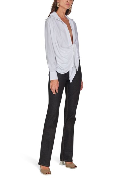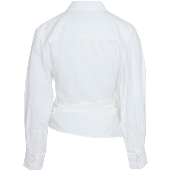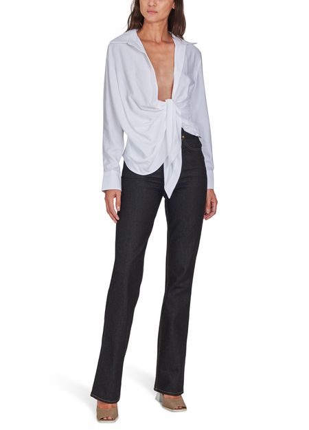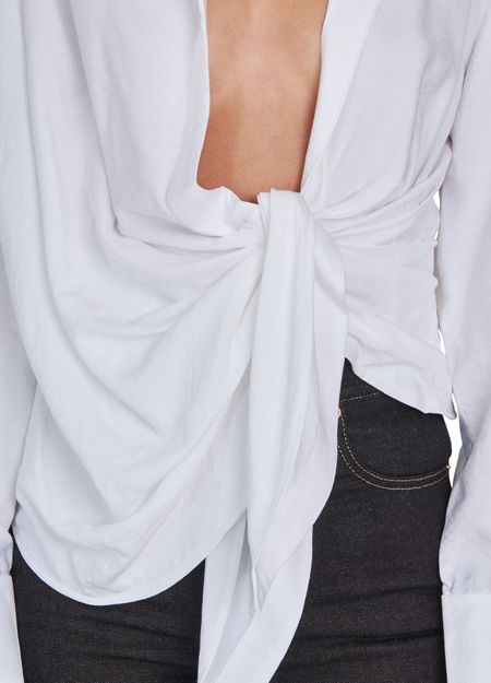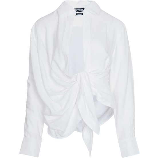 Jacquemus has retained the long sleeves and point collar of this elegant traditional piece, while giving the Bahia shirt a flowing, pleated drape, tied casually at the front.
