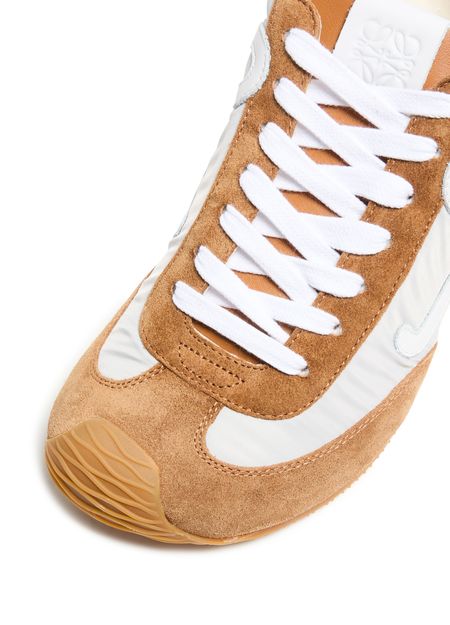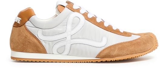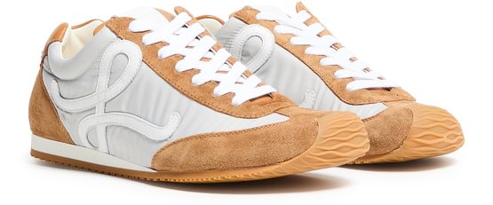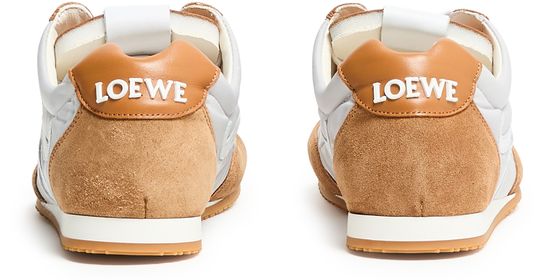 Introducing Loewe's suede sneakers, a masterpiece of modern design. These running sneakers feature a round toe and notched sole for optimal comfort. The visible stitching adds an element of craftsmanship, while logos adorn the back and tongue, elevating the style to a new level of sophistication.