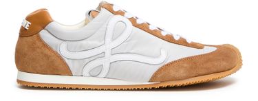 Discover Loewe Ballet Runner 2.0 in nylon and calfskin, where style meets functionality. These sneakers feature a round toe and visible stitching, complemented by a unique laces and strap closure. The logo at the back and side adds a touch of sophistication, ensuring every step is taken in elegance.