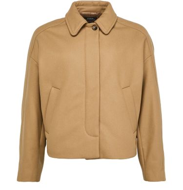APC's Becca jacket showcases a short, long-sleeved silhouette with a front buttoned closure, perfect for effortless layering. Its side welt pockets add functionality, while the appliquéd logo subtly highlights the brand's identity. This casual jacket effortlessly blends style and comfort, making it an ideal choice for everyday wear.