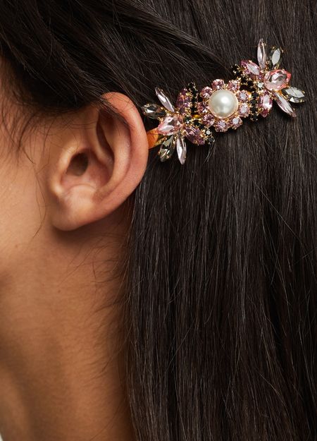 Discover the exclusive capsule collection of Erdem Christmas jewellery. The Bee barrette by Erdem will illuminate your hair. Set with crystals on a gilded metal setting, it will dress up your hairstyle for any occasion.