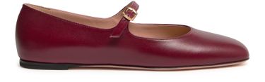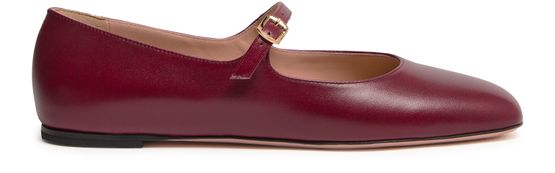 Reveal Bally's Ballyrina ballerinas, crafted from smooth leather with a chic square toe and buckled strap. These ballet pumps feature a flat heel and a very thin sole, offering both style and comfort. The printed logo and gold finish add a touch of sophistication to these elegant shoes.