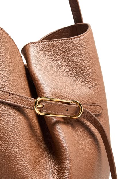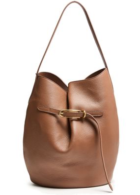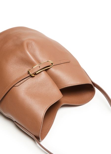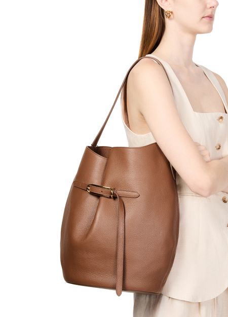 Reveal Liffner's belted large bucket bag, crafted from sumptuous suede with a single handle for effortless carrying. The gold finish hardware and contrast stitching highlight its refined design, while a spacious interior and zippered pocket offer practical elegance for modern lifestyles.
