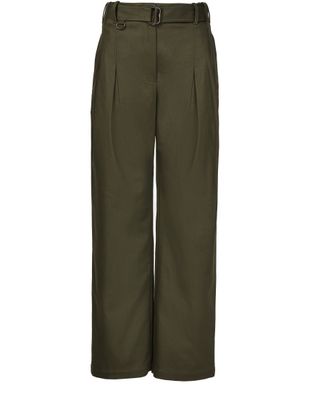 • Description : High-waisted fit, belted waist, pleats on the front, buttoned zipper closure, belt loops.