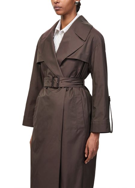 Reveal Max Mara belted trench coat, a long silhouette with a refined collar and button fastening. Side pockets add practical flair, while the tailored fit and classic raincoat style ensure effortless sophistication. Perfect for elevating any ensemble, this piece transitions seamlessly from day to evening.
