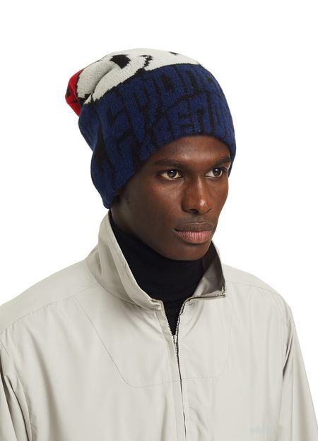 The Berretto beanie is by Moncler Grenoble. This accessory blends new wool and cashmere to create a piece that is soft and warm. It features a colourful version of the brand's logo.