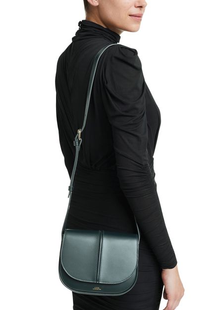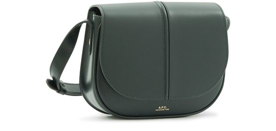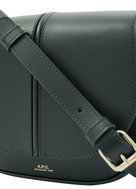 APC's Betty Bag features a single compartment with a snap-button fastening and flap closure. The logo in gold letters and printed logo adorn the front, while the gold finish adds a luxe touch. It can be worn on the shoulder with a single handle or thin, adjustable strap for versatile styling options.