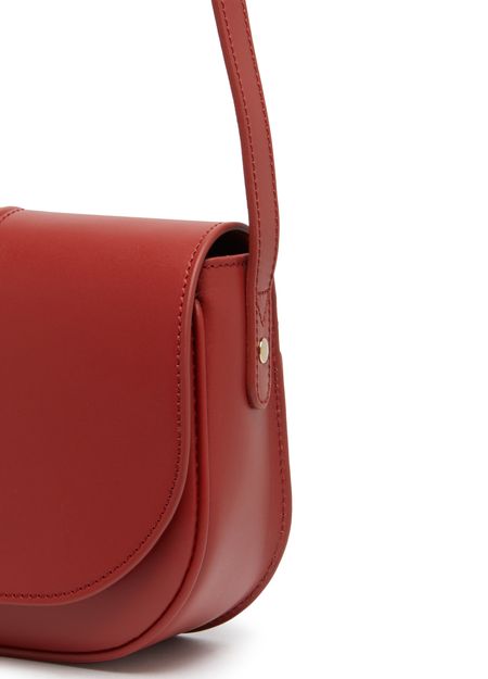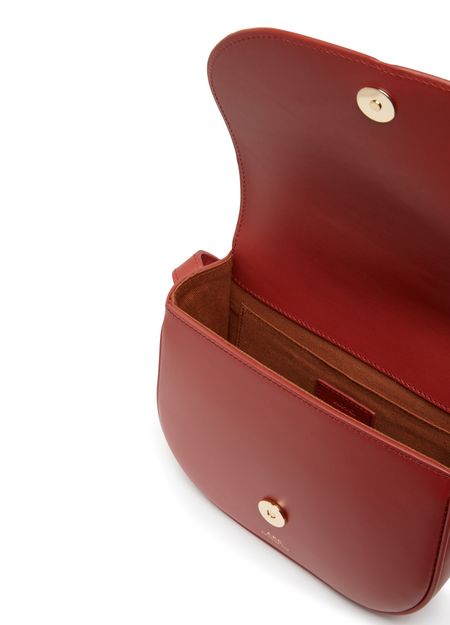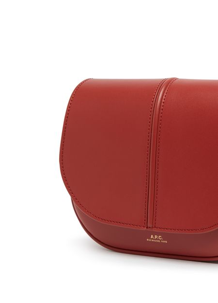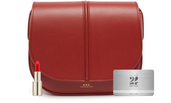 APC's Betty Bag features a single compartment with a snap-button fastening and flap closure. The logo in gold letters and printed logo adorn the front, while the gold finish adds a luxe touch. It can be worn on the shoulder with a single handle or thin, adjustable strap for versatile styling options.