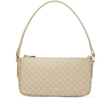 Bianca bag is a versatile and stylish accessory with a handle for easy carrying. The brand's monogram and logo in gold letters are featured on the bag, which has a single compartment and a zipper closure with gold metal finishes. It can be worn in the hand or on the shoulder for a chic look.