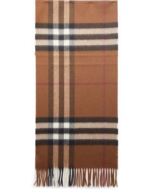 Big scarf features a large and enveloping design with fringe finishes. Its iconic vintage check pattern adds a touch of timeless elegance. Versatile and stylish, this accessory can be worn around the neck or on the shoulders, making it the perfect addition to any outfit for a cozy and chic look.