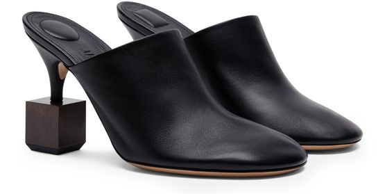 • Description : visible stitching, mules, round toe, high heel, closed.