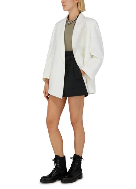 • Description : Deconstructed jacket, asymmetric cut, tailored piqué collar, long sleeves, buttoned cuffs, breast pocket, flap pockets, buttoned fastening.