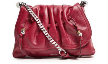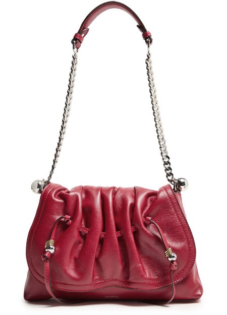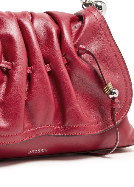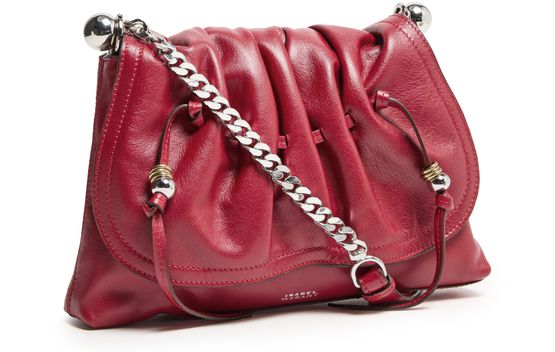 Reveal Isabel Marant's Bolton pouch bag, crafted from grained leather with a chic chain strap. This bag features tassel details, a zippered interior pocket, and a magnetic flap closure. The front logo and silver finish add a touch of elegance, making it a perfect accessory for any occasion.