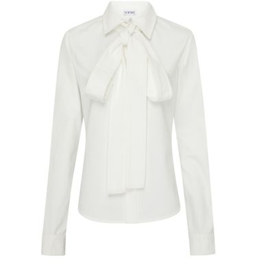 Loewe's Bow shirt is a sophisticated piece with a concealed closure and regular length. It is long-sleeved with a logo at the back label. This shirt features cuffed sleeves, buttoned cuffs, and a shirt collar for a polished look.