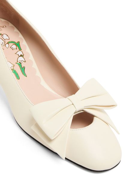 Valentino's Bowow pumps showcase a chic design with visible stitching that highlights their craftsmanship. Featuring a low heel and a round toe, these closed pumps offer both style and comfort. The contrasting sole adds a unique touch, making them perfect for elevating any outfit with effortless elegance.