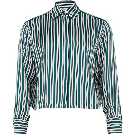 Reveal Max Mara's Brama striped shirt, a statement piece in any wardrobe. This long-sleeved shirt with cuffed sleeves and a loose fit offers both comfort and style. The striped print adds a touch of elegance, while the button fastening ensures a perfect silhouette. Ideal for versatile chic ensembles.