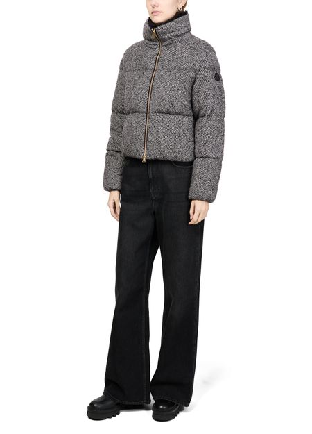 Reveal Moncler's Brezesse down jacket, a regular fit puffer jacket that combines a marled material with a warm fabric for ultimate comfort. This crop-length piece features a zipper closure and long sleeves, enhanced by a high neck and a checked pattern. Its padded texture and lined interior make it a versatile choice for any occasion.