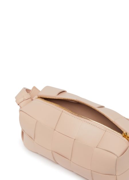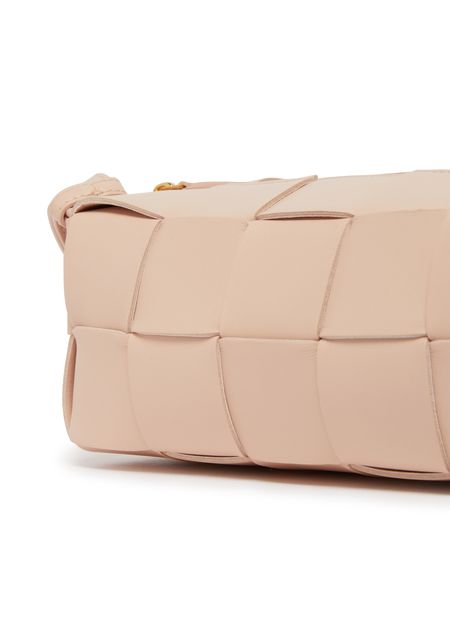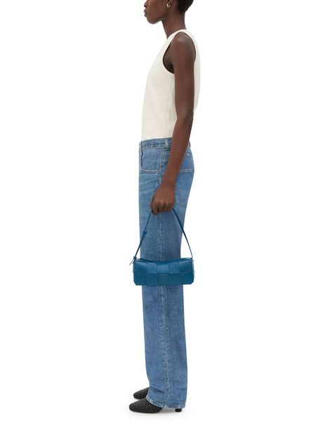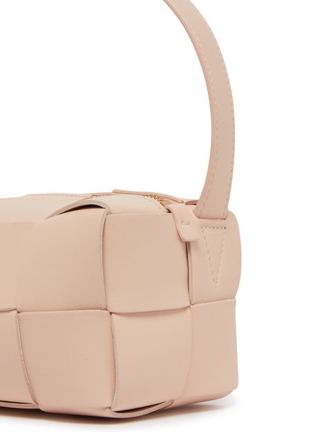 Bottega Veneta's Brick Cassette bag is a stylish accessory that can be hand-carried or worn over the shoulder with its adjustable strap. It features a convenient zipper closure to keep your essentials secure. With its sleek design and high-quality craftsmanship, this bag is perfect for any fashion-forward individual.