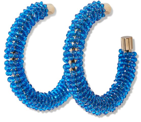 These Brila hoop earrings form part of a Jacquemus collection designed around the theme of the Mediterranean and from which a radiant force emanates. These semi-open rings are decorated with a multitude of bright orange Swarovski crystals. The gilded brass finishings create a coveted accessory with precious accents. Team these earrings with a flowing dress or an asymmetric shirt in the spirit of the fashion...