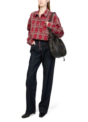 Introducing Isabel Marant's Bruna long sleeved shirt, a masterpiece of modern style. This oversized top features a checked pattern and dropped sleeves, offering a relaxed yet sophisticated look. The front buttoned closure and visible stitching add a touch of elegance, while the breast pocket enhances its practicality.