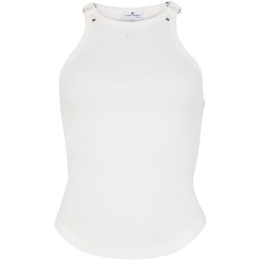 Reveal Courreges's Buckle 90's rib tank top, a perfect blend of style and comfort. This slim fit top, featuring a crew neck and ribbed texture, ensures a flattering silhouette. Ideal for layering or as a standalone piece, it's an essential addition to any wardrobe.