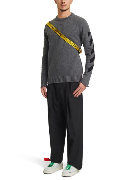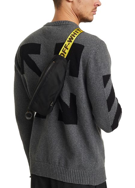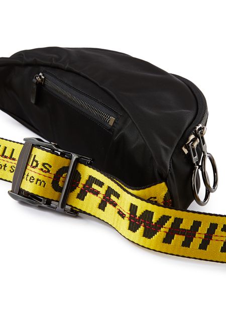 This vintage-style Off-White bumbag was inspired by banana bags. It fastens around the waist, making it easy to access personal items.