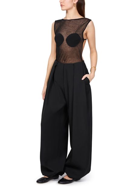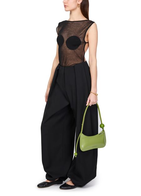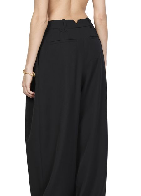 Jacquemus's Calisson pants showcase a sleek ankle length, perfect for casual outings. With visible stitching and practical welt pockets, they blend style and functionality. The elasticated ankle adds a modern twist, while the back pocket and belt loops enhance versatility, making these pants a must-have for effortless chic.