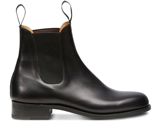 An iconic piece of the J.M. Weston collection, the Cambre Box Calf Chelsea Boots are crafted from a single piece of calfskin without assembly, stitched in the strict tradition of Goodyear welt construction. Mounted on a flat-heeled sole, these boots have an elastic yoke and finish with a rounded point. Show yours off with cropped flared jeans.