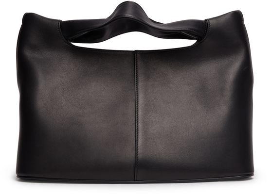 The Row Camden bag is a mini bag made of smooth leather with two handles and visible stitching. It is designed to be worn in the hand and is perfect for carrying small essentials. The bag is simple yet elegant, making it a versatile accessory for any outfit.