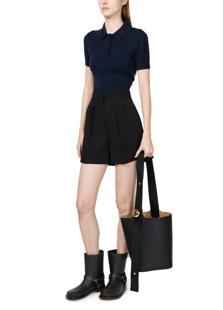 Loewe's Campo biker ankle boots showcase a high-top upper with a striking silver finish. Visible stitching adds character, while the round toe and low block heel ensure comfort and style. These closed boots effortlessly blend ruggedness with sophistication, making them a versatile choice for any adventurous spirit.