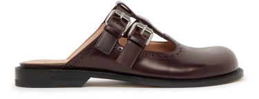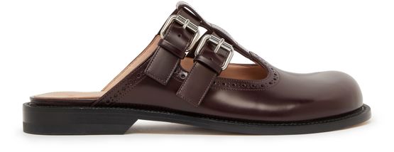 Loewe's Campo Mary Jane mules feature a round toe, buckled strap, closed design, logo-printed insole, and low heel.