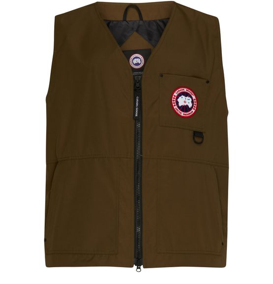 Canada Goose's Canmore jacket is a sleeveless vest with a zipper closure for easy wear. It features a front logo, chest logo, appliquéd logo, and logo at the back label. The jacket also has patch detail, side pockets for storage, and a short length for a stylish look.