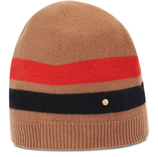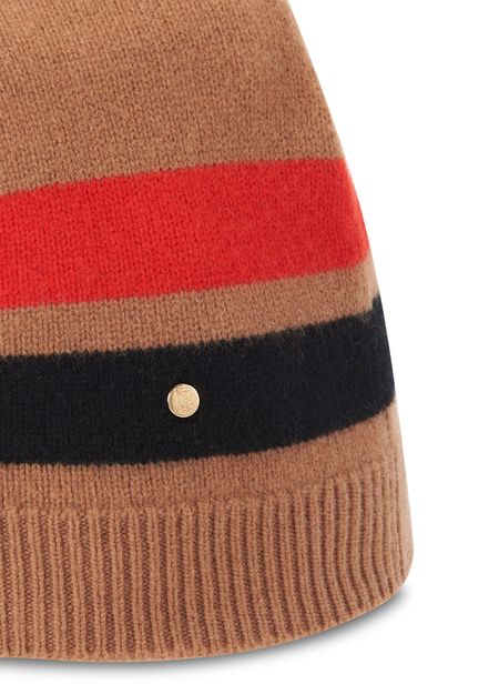 This elegant hat fits perfectly into a feminine sportswear or smarter wardrobe. Its esthetic design uses Burberry's iconic colorful stripes.