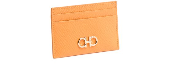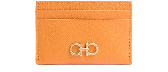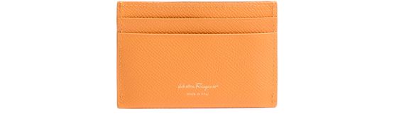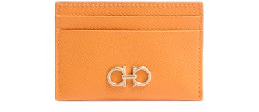 Ferragamo's card holder showcases a sleek design with interior slots for cards, ensuring organization and style. The front logo in gold letters adds a touch of elegance, while the visible topstitching highlights its craftsmanship. Perfect for those who appreciate luxury in every detail, it’s a must-have accessory for any occasion.