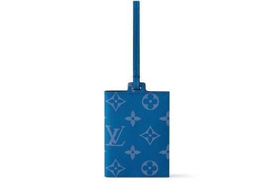 New for 2024, the Card Holder Necklace is the on-trend way to carry cards and other small essentials. Styled in a mix of Taiga cowhide and Monogram canvas in bright, vibrant blue, it features a long slender strap and a secure double snap closure. This compact, practical accessory adds a fresh splash of color to any outfit.