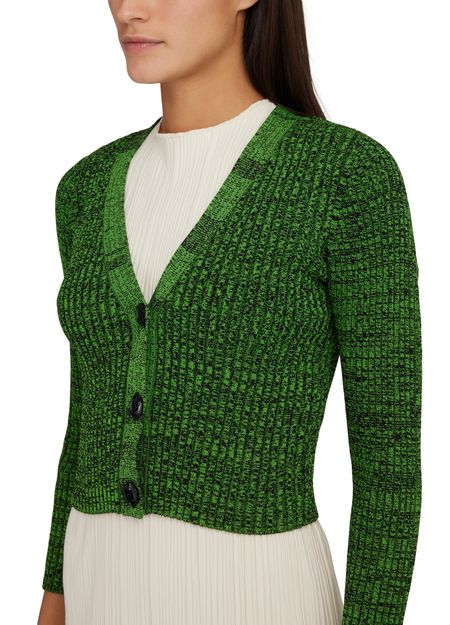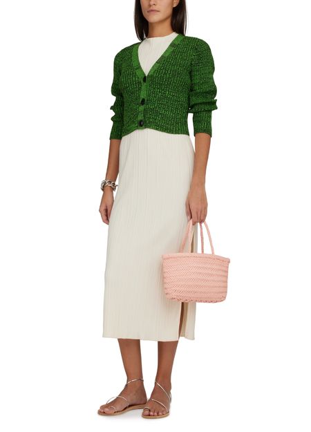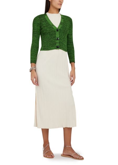Stay cozy and stylish with Ganni's cardigan. Crafted from warm fabric, it features a classic V-neck and front buttoned closure for easy layering. The tailored sleeves add a touch of sophistication, while the label with logo subtly showcases the brand's signature charm. Perfect for staying chic on chilly days.