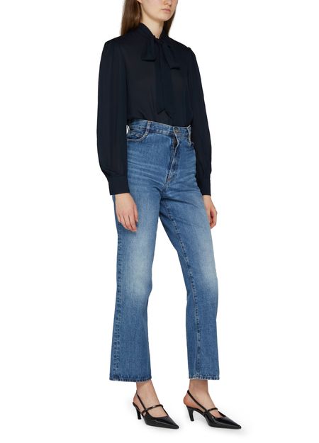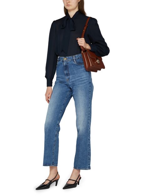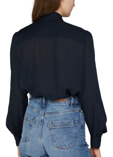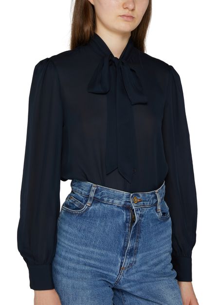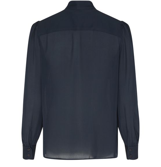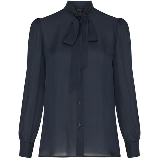 • Description : front buttoned closure, logo at the back label, appliqued logo, visible stitching, regular length, long-sleeved, cuffed sleeves, blouses, buttoned cuffs, lavalliere/tie-neck.