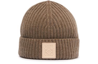 Loewe's Cashmere beanie showcases a round crown design, perfect for effortless style. With its logo at the front and visible stitching, this accessory elevates any outfit. Crafted from luxurious cashmere, it offers warmth and comfort, making it an essential piece for chilly days while adding a touch of sophistication.
