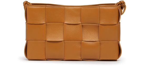 Bottega Veneta's Cassette shoulder pouch is a sleek and stylish clutch bag made of smooth leather. It features a thin strap for wearing on the shoulder and a convenient zipper closure. This versatile and modern accessory is perfect for adding a sophisticated touch to any outfit, day or night.