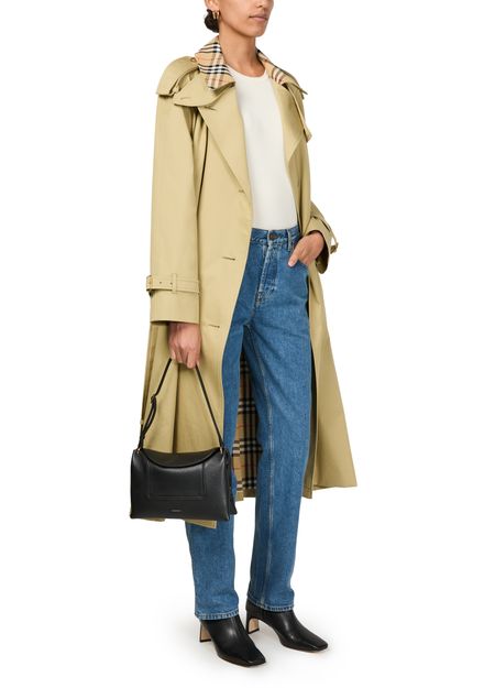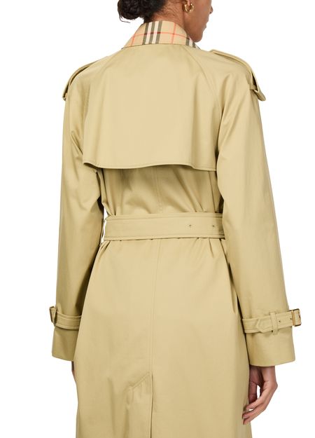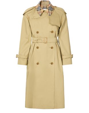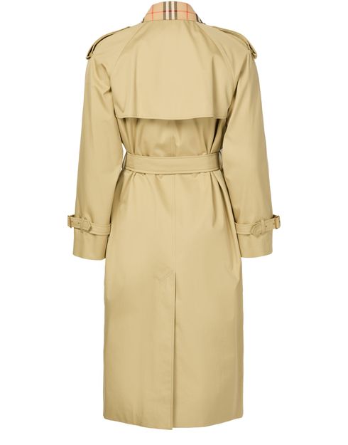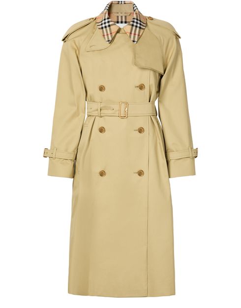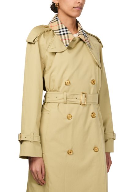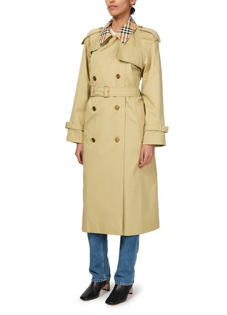 Unveil Burberry's Regular Fit Trench Coat, a long, double-breasted masterpiece for women. Adorned with embellished buttons and flap pockets, it showcases a timeless collar and long sleeves. This trench coat marries elegance and practicality, making it a versatile staple for any wardrobe.