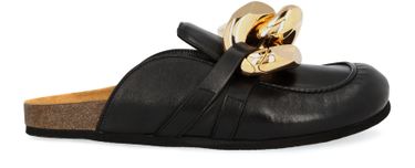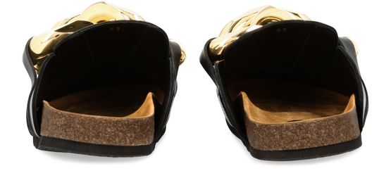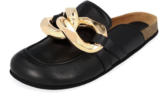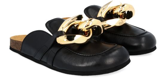 This pair of mules with chains features a sophisticated design. Here, the JW Anderson brand unveils a boldly styled creation with an oversized chain-link ornament at the front.