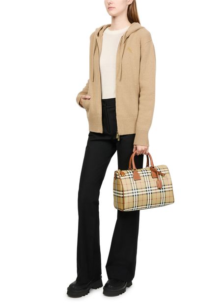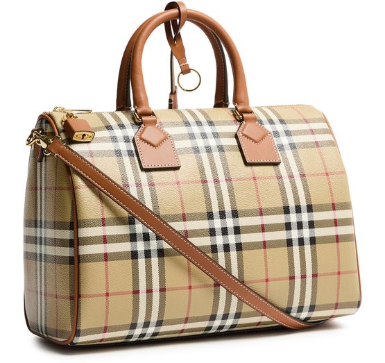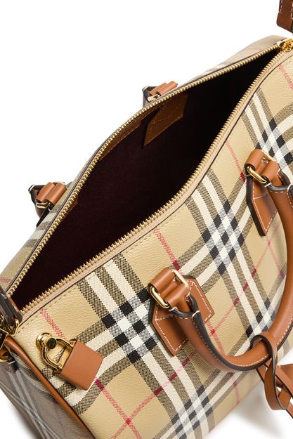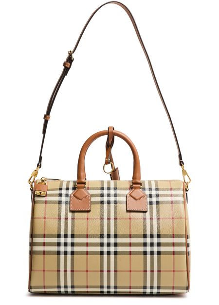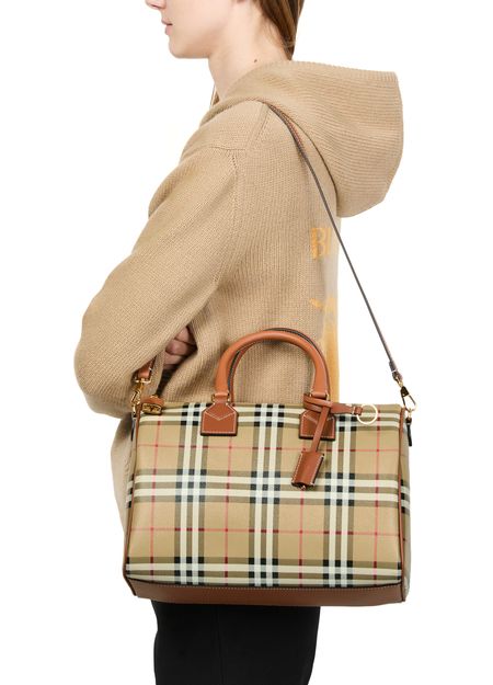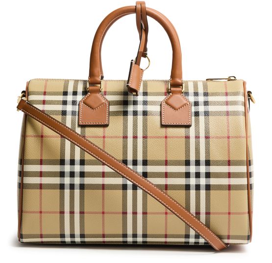 • Description : Shoulder bag, crossbody bag, burberry Check, double handles, leather handle, thin strap, detachable strap, zipper closure, contrast stitching, gold finish.