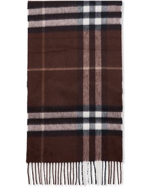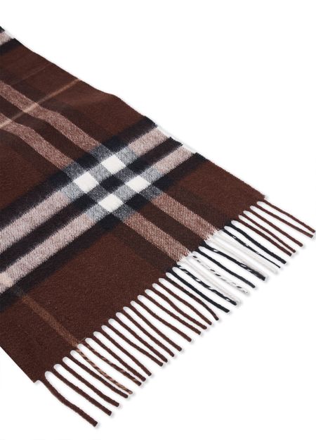 Reimagine Burberry's Check cashmere scarf, featuring a distinguished printed logo, classic checked pattern, and elegant fringed edges. This accessory beautifully captures timeless style, offering warmth and sophistication in equal measure.