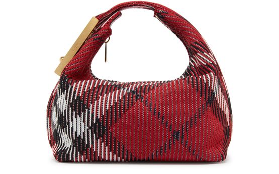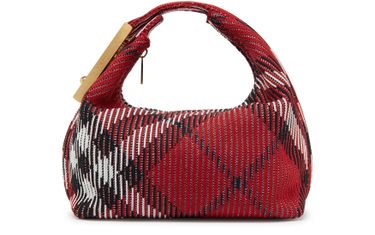 Burberry's Check handbag showcases a chic mini bag design with a striking all-over print. Its visible topstitching adds a touch of sophistication, while the zipper closure ensures security. With a wide strap for versatility, it can be hand carried or worn with the single handle, perfect for any occasion.