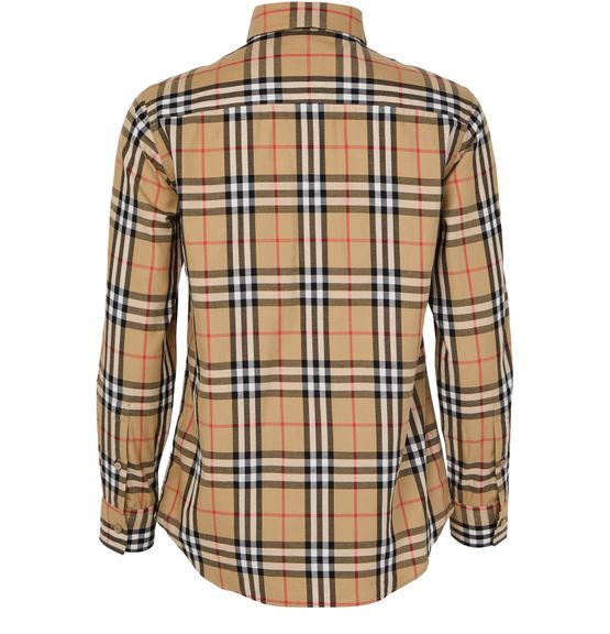 Reveal Burberry's stretch cotton shirt, a refined long-sleeved piece featuring the iconic Burberry check. The button fastening and tailored silhouette offer a polished look, while the classic pattern brings timeless appeal. Perfect for elevating both casual and formal ensembles with effortless sophistication.