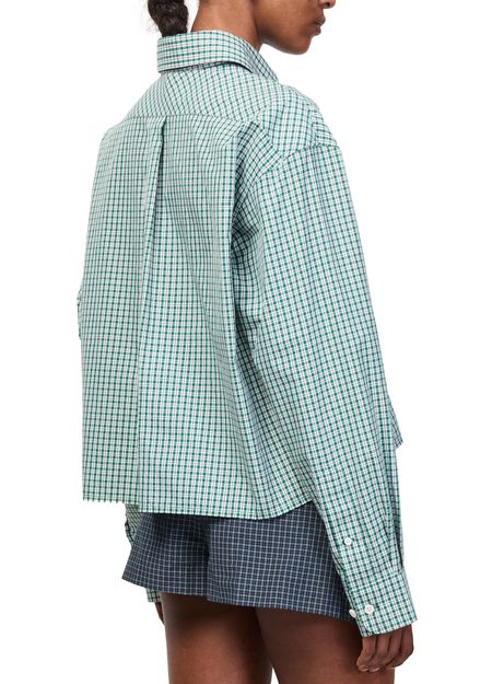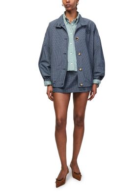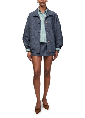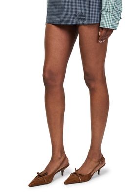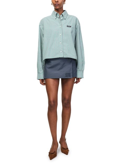 Reveal Miu Miu's checkered technical fabric culottes, a modern statement with a vibrant checked pattern and mini length that flatters the silhouette. The button fastening, back pocket, and embroidered logo add refined touches, while belt loops ensure versatile styling from day to evening.