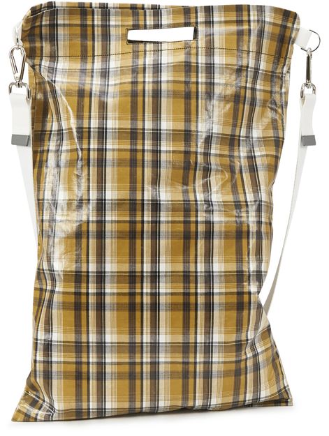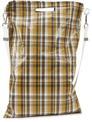 This Uniforme oversized cross-body shoulder bag is a must-have to accessorize a classic outfit with its chequered pattern and broad shoulder strap.
